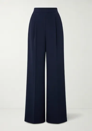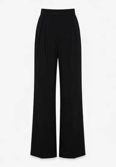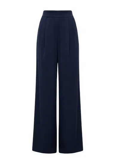 Şık ve rahat yüksek bel kesim, dökümlü wide leg pantolon. Günlük ve ofis kullanımına uygun.